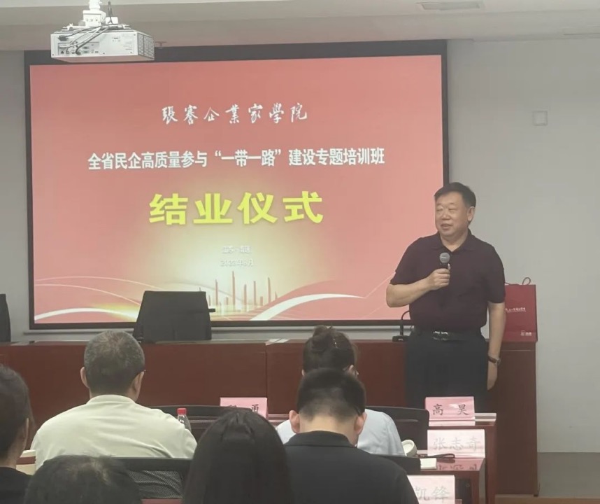 培训结束后,秦江集团董事长解九江在结业仪式上作为代表总结发言,解总表示弘扬新时代当代企业家精神,引领企业经济高质量发展,扎根“一带一路”建设从自身做起,从秦江做起。